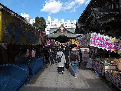 Yushima Tenjin (湯島天神), formally Yushima Tenmangu (湯島天満宮), is a popular Shinto shrine near the Shinobazu-no-ike Pond in Ueno Park. This shrine is well-known for its apricot blossom in February to March and chrysanthemum in November. Its Reitaisai, or the Annual Grand Festival, is also somewhat large. For details about this shrine, see the article on Yushima Tenjin Shrine.