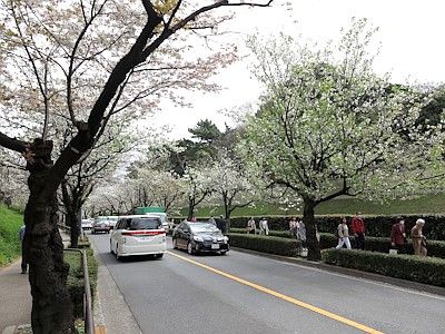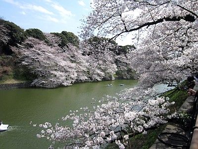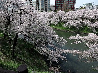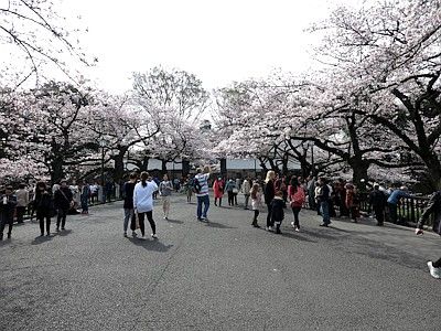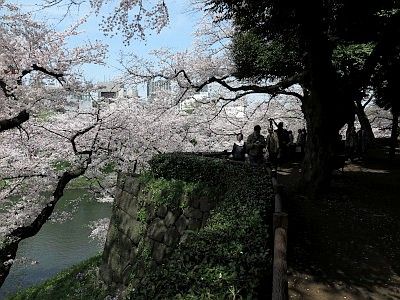 There's a passage named Chidorigafuchi-ryokudo running along side with the moat, and many cherry trees are planted there.