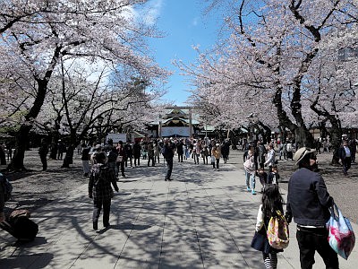 The area from Yasukuni Shrine to adjoining Chidorigafuchi Moat in Chiyoda-ku is, along with Ueno Park in Taito-ku, one of the most prestigious hanami (cherry blossom viewing) spot in Japan. (As for cherry blossom at Ueno Park, see the article on the Ueno Sakura Matsuri.)