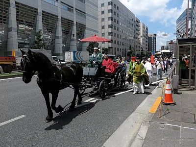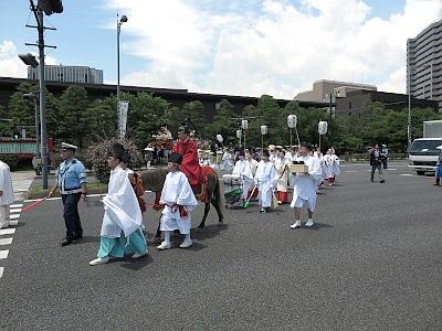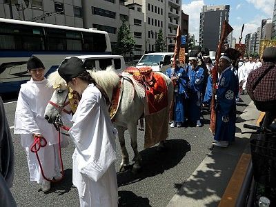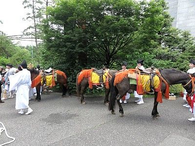 In this event, the spirits of gods enshrined at Hie Shrines are placed on two horen and one mikoshi, both of which are a type of portable shrine, and parade through the territory they protects.