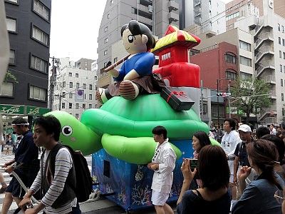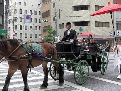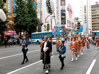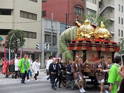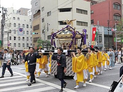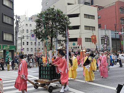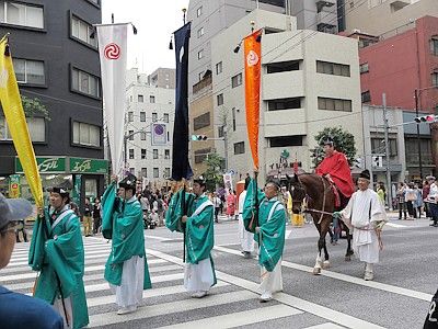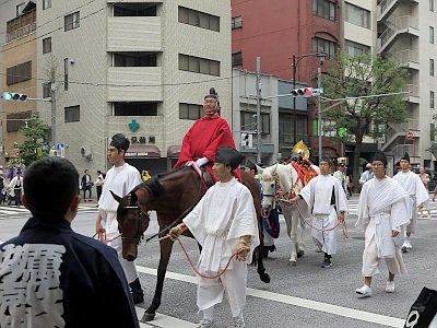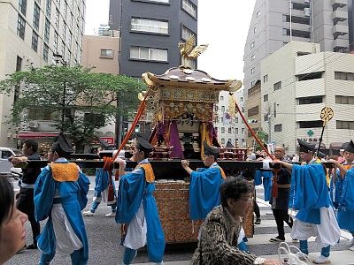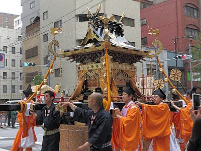 Shinko-sai is the highlight of this whole festival. It is a large parade bearing the two horen and one mikoshi, parading through the area the shrine divinities protect all day long to purify the land and to offer the residents an opportunity to greet their guardians at their communities. The procession goes through 30km (19 miles) in length, but it is said that the procession is at its best at around Mitsukoshi Department Store in Nihombashi (around 4:30pm).