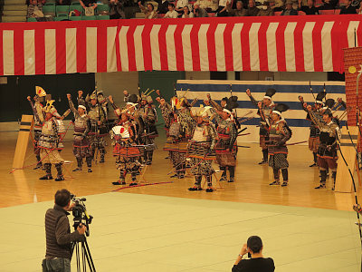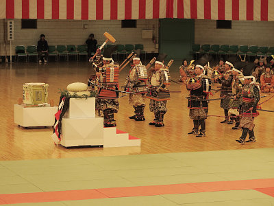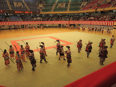 After some ceremonies, the Yoroi Kizome is conducted in armors of the Kamakura period (late 12th century to early 14th century). The Yoroi Kizome is a ritual practiced when a warrior obtained a new armor or when he wore an armor for the first time.