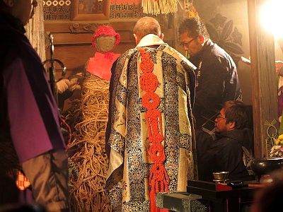 After unbinding the ropes completely, the priests go to the adjoining Jizodo, the hall enshrining Jizo Botsu, to do some rituals.