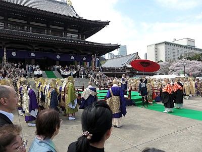 When the parade reaches the main hall, priests conduct niwa-gishiki, which is a ritual praying for a successful sutra chanting which follows this event.