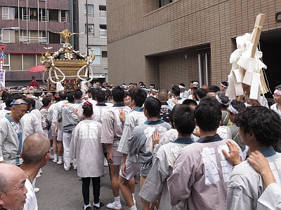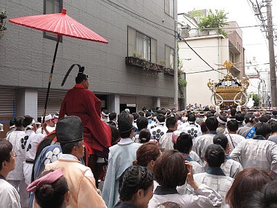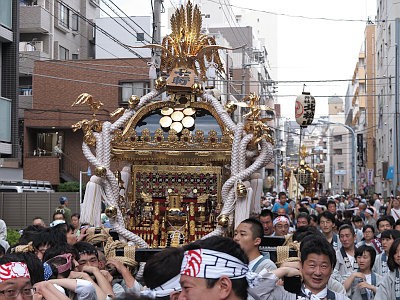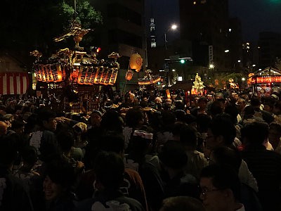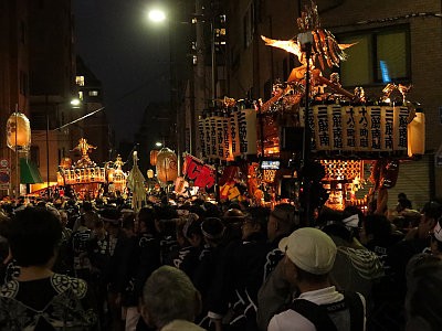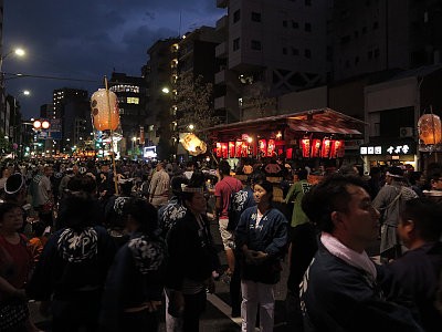 From Friday evening to Sunday during the festival, many community-owned mikoshi conduct their procession on their own, but on Saturday evening, many community-owned mikoshi perform joint parades. Note that generally speaking, these kind of events will not be announced on the internet. If you don't know where and when these events take place, just wait around the shrine and some of them will arrive there.