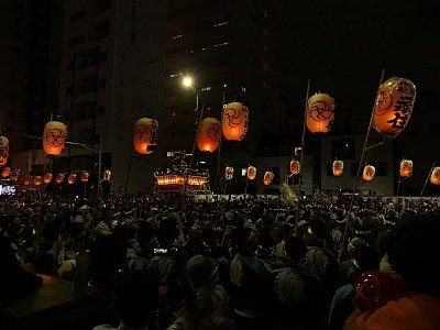 This joint parade is conducted on Saturday evening by three communities located to the south of Toei Oedo Line Shin-okachimachi Station.