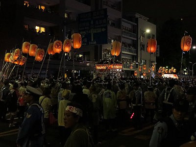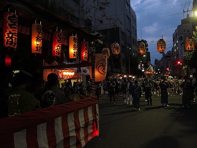 This joint parade is conducted on Saturday evening by four communities located to the southeast of Toei Oedo Line Shin-okachimachi Station.