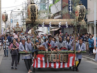 Torikoe Jinja (鳥越神社), said to be founded in 651, is a Shinto shrine located in the Kuramae district, which is to the south of the Asakusa district. It is a 6-minute walk to the west from the southernmost entrance of Toei Asakusa Line Kuramae Station. (It takes a little more from Toei Oedo Line Kuramae Station.)