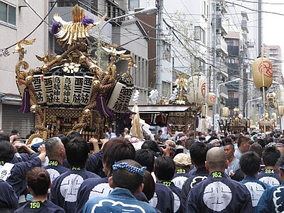 The Torikoe Matsuri (鳥越祭) held at this shrine in early June is another name for its Reitaisai, or the annual grand festival. It is one of the most well-known festival in the shitamachi (lower town) district of Tokyo. It is famous for the shrine-entering performance of its large shrine-owned mikoshi on Sunday night.