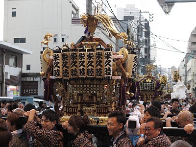This joint parade is conducted on Saturday evening by six communities located around the Torikoe Shrine.