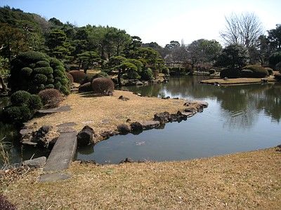 This site is listed as a Special Place of Scenic Beauty. In the 17th century, this site used to be the residence of Tokugawa Tsunayoshi, the domain lord who would later became the 5th shogun of the Tokugawa Shogunate. In 1684 this grounds were converted into a shogunate-run medicinal herb garden to provide commoners with herbs, and when the feudal times ended, it eventually became the Koishikawa Botanical Garden of Tokyo Imperial University (present-day Tokyo University).
