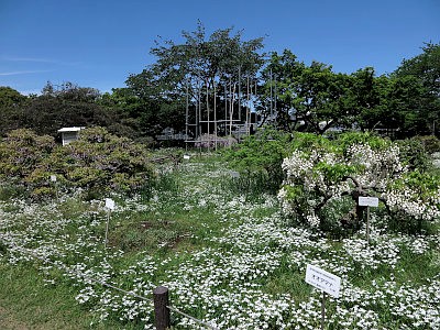 In the northwestern corner of the botanical garden, there is a half-Western-half-Japanese-style (known as Giyo-fu in Japan) wooden building constructed in 1876 on the Hongo campus of Tokyo University and relocated here in 1969.