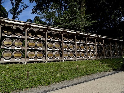 Large Shinto shrines are often presented sake barrels from sake manufacturers. Sake, which is a kind of Japanese domestic alcohol beverage, is used in Shinto rituals.