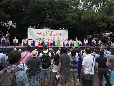 The Harajuku Super Yosakoi, held aroud JR Yamanote Line Harajuku Station in late August, is a large yosakoi street dance festival dedicated to Meiji Jingu. For details about this event, see the article on the Harajuku Super Yosakoi.