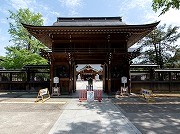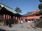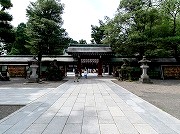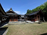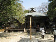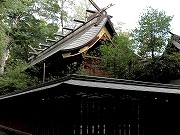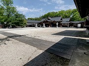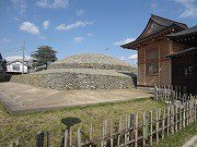 Behind the shrine's buildings is an overhauled mound of a Kofun tomb constructed in the 7th century, whose shape is pretty rare type.
