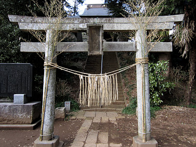 二ノ鳥居は葺不合神社の旧境内に明治15年に建立されたものを移築。我孫子市指定文化財。拝殿に至るには今度は上りの石段がある。