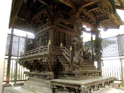 拝殿は元は江戸期の仏堂で、明治期建立の本殿には多くの彫刻が施されている。また境内の構造も特徴的。