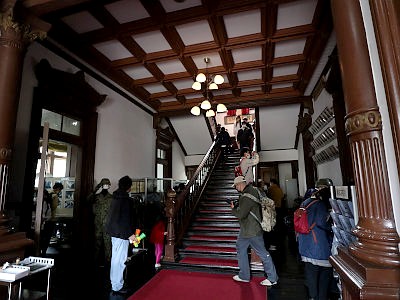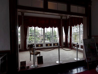 建物は、東京目黒にあった陸軍騎兵実施学校に、天皇の御馬見所として明治44年に建設されたもの。大正5年に騎兵実施学校が当地に移転する際、この御馬見所もまた移築され、天皇・皇族の迎賓館や宿舎として使用された。