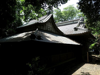 本殿は江戸後期の1789年建立で流山市指定有形文化財。壁面全面に彫刻がはめ込められているが、屋根以外は覆われており見ることは出来ない。