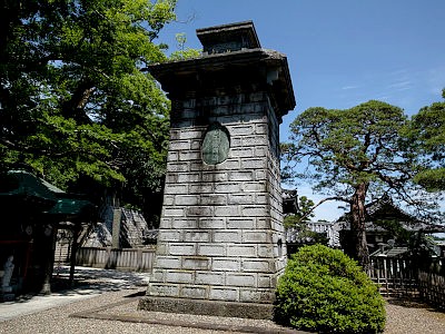 灯明塔は明治26年建立。煉瓦造・石張り。東日本大震災後に上部が撤去された。