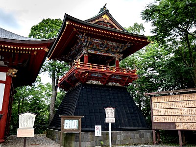 鳥居は、笠木(屋根)の上に宝珠が乗る非常に珍しいもので、宝珠鳥居とも呼ばれる。