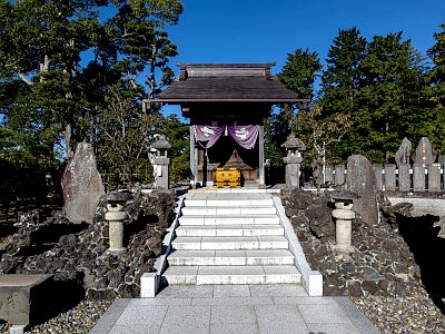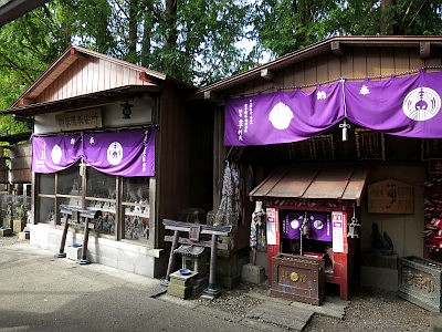 奥ノ院は奥行11mの洞窟で、奥に不動明王の本地仏である大日如来像を安置する。門扉は毎年7月7~9日の祇園会でのみ開扉。