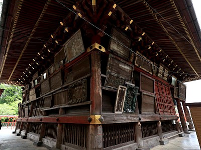堂の内外には多数の額が奉納されており、個性的なものも多い。