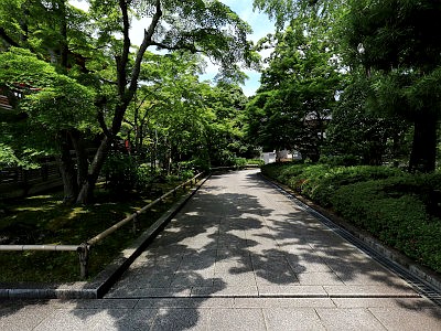 平和大塔の脇から成田山霊光館への通路沿いには苔庭が整えられている。