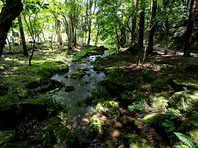 文殊の池、龍樹の池、龍智の池があり、浮見堂も立つ。