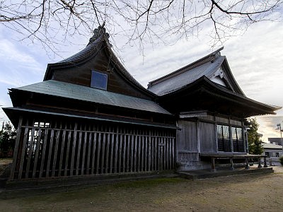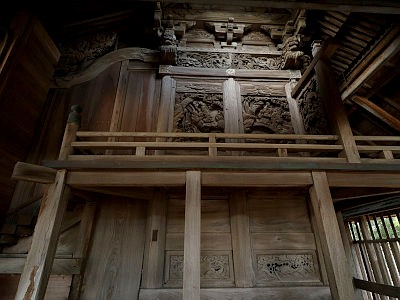 本殿は江戸後期の1840年に起きた大火で焼失し、その後に再建。壁面全面に彫刻が嵌め込まれている。