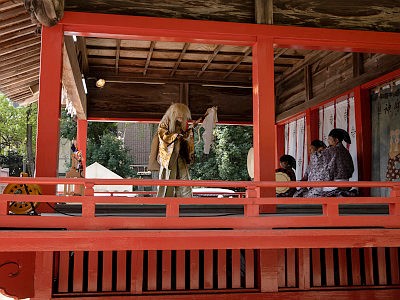 牡丹の開花期間中は、境内にて各種の演芸が奉納される。