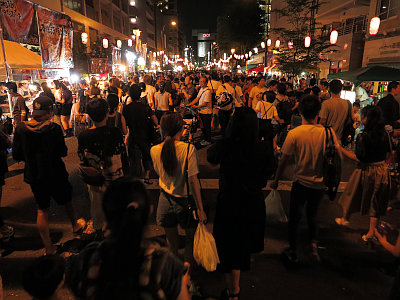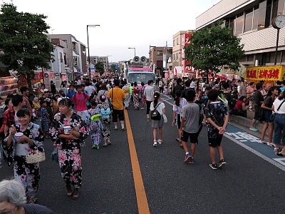本町通りは駅から市役所手前まで歩行者天国となっており、駅前商店街を過ぎれば賑わいが一旦落ちるが、神社に近くなるにつれまた再び賑わい出す。