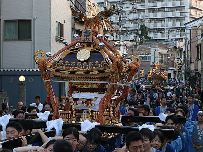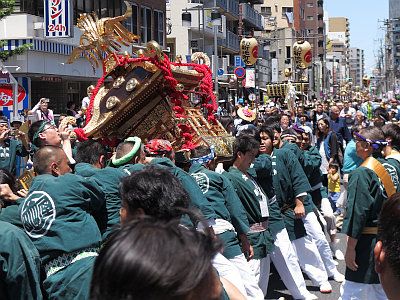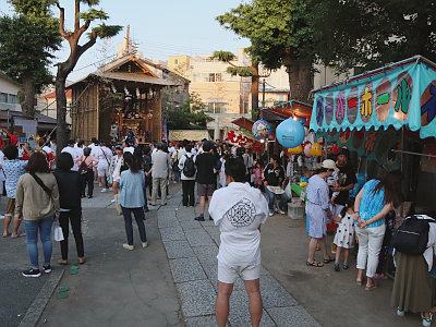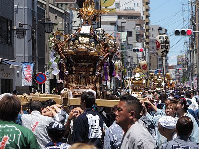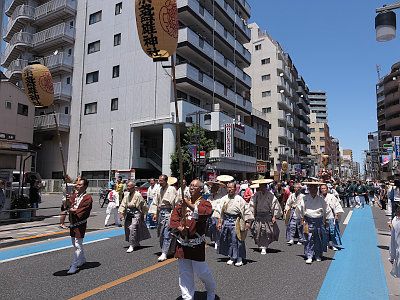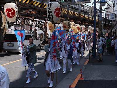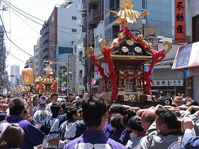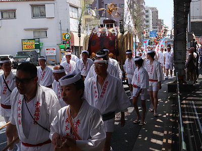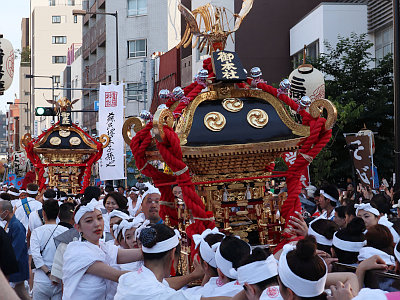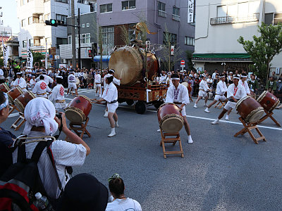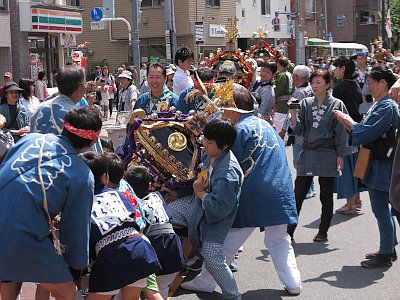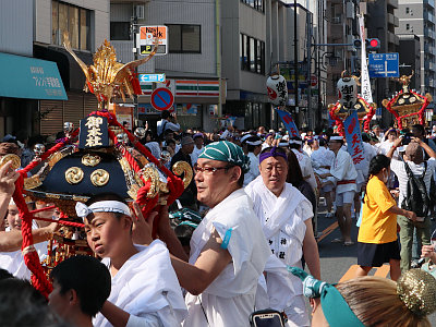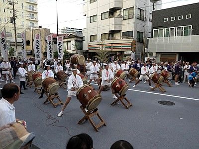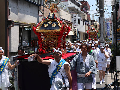 一つの町会内での行事だが、大・中・小2で計4基の町神輿が神輿振りをしながら連合渡御する。なお、この4基は日曜夕刻の連合宮入にも参加する。