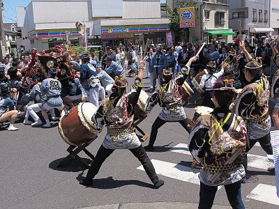 土曜の夕刻に第二峡田小学校近く [地図] で毎年行われる、三河島地区内の3ヶ町による連合渡御。三河島地区では他にも幾つか小規模な連合渡御が行われているようだ。