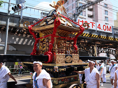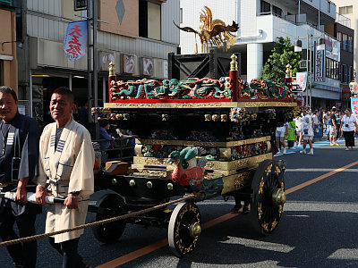 本社中神輿(平成7年製作)は台車に乗せられて渡御。
