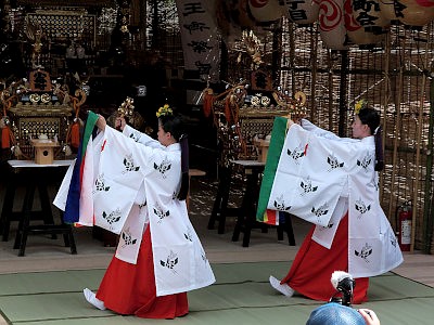 神幸祭に先立ち、式典や巫女舞などの奉納が行われる。