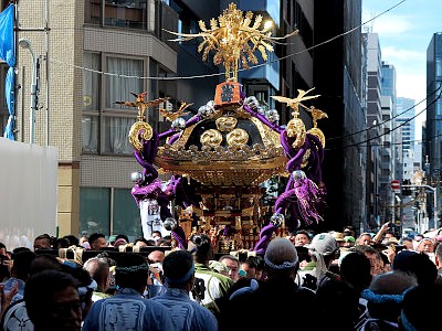 そして日曜日には、日本橋地区のより広い範囲を担ぎ渡御する。