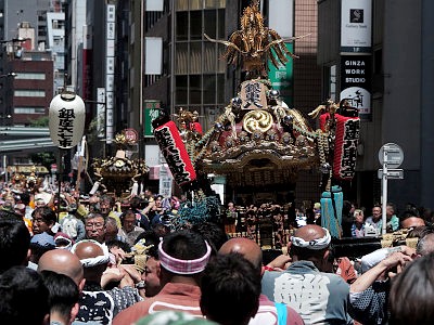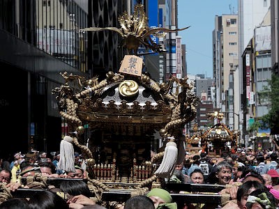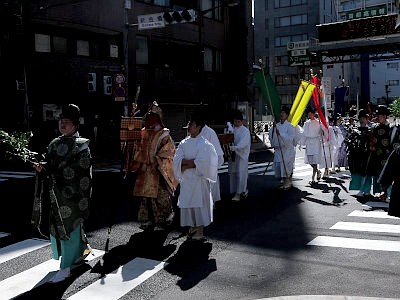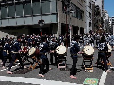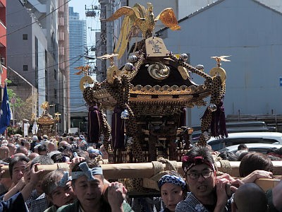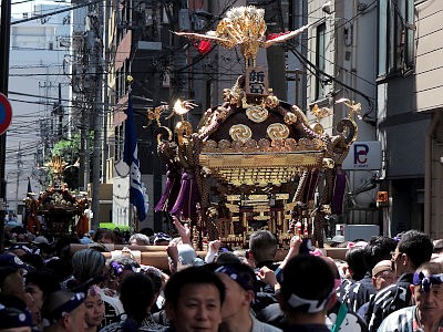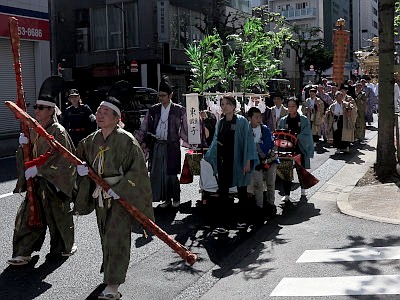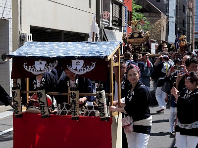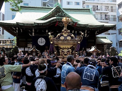 当社の例大祭はゴールデンウィーク中の5月初旬で、江戸下町の神社では先陣を切る。3年毎の本祭では、宮神輿が巡行し、町神輿も連合渡御する。