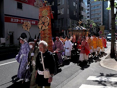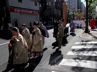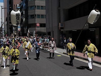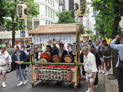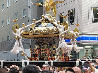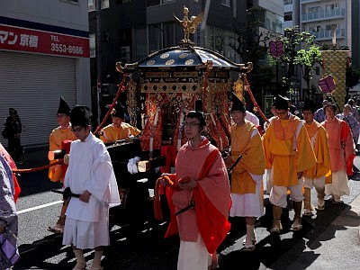 当社の氏子は首都高を境に、京橋四之部と京橋五之部に大きく分かれ、3年毎の本祭では、町神輿が連合渡御する。