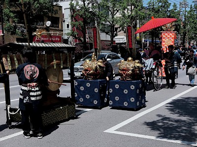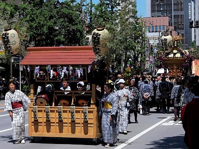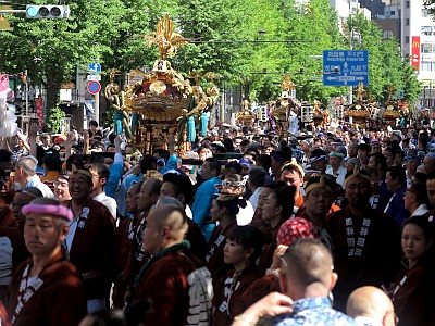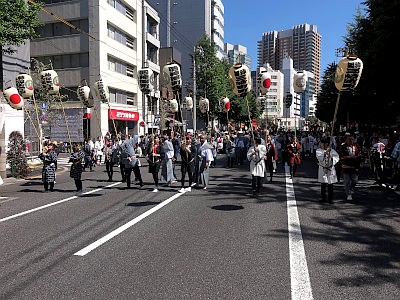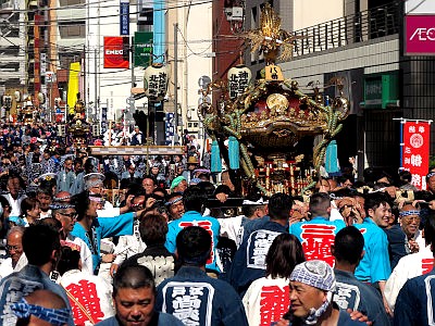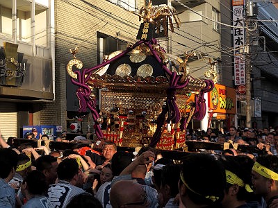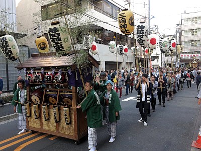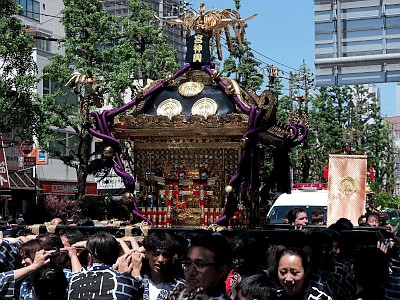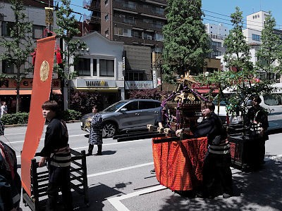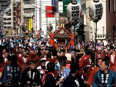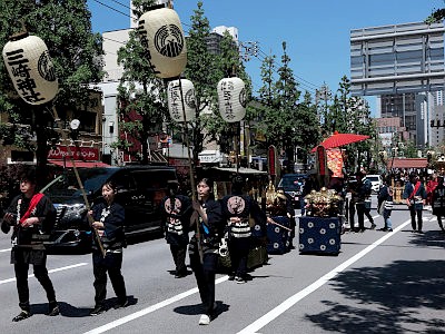 三崎稲荷神社の例大祭は5月初旬で、隔年で町神輿の連合渡御と宮神輿の渡御が行われる。
