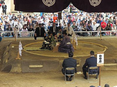 9:00~9:30には土俵祭として、土俵で神事が行われる。なお、一般観覧席はこの時点ですでにほぼ埋まっている。