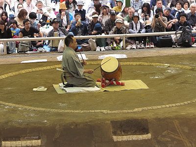 - 12:50 十両土俵入、櫓太鼓打分