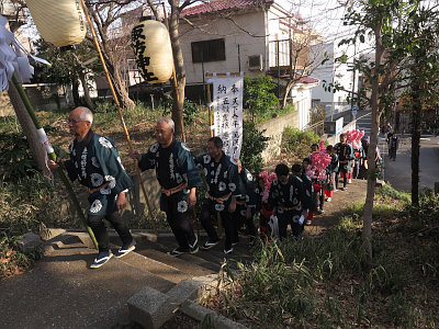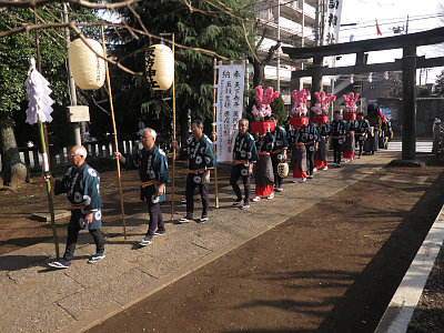 祭典終了後、獅子舞の一行は南鳥居から出て東鳥居(表参道鳥居)より再び境内に入る。