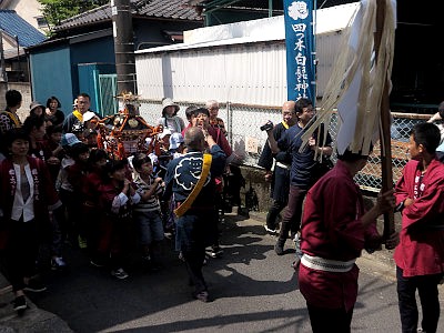 四つ木白髭神社の例大祭は5月下旬で、隔年で宮神輿の渡御が行われる。