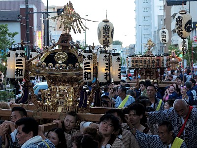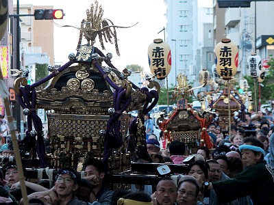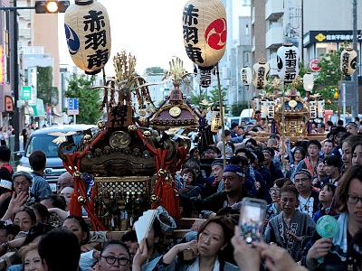 隔年で土曜日の夕刻に、町神輿がJR赤羽駅へと連合渡御を行う。