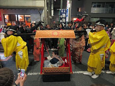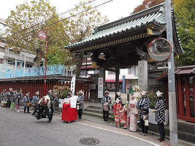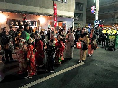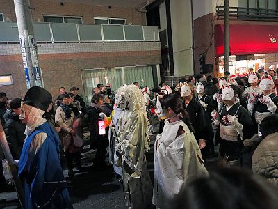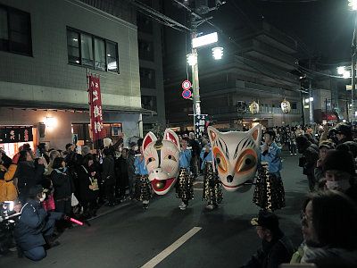 以下の写真は12月上旬にたまたま王子稲荷神社に参拝した折、出くわした狐の行列。本番と比べて小規模だったが、仮装などはなされていた。