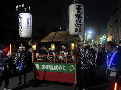 大晦日には、装束稲荷でかがり火「年越しの儀」、鏡割り式、祝舞「狐剣舞」の奉納などがある。狐の行列は新年の到来とともに装束稲荷を出発し、権現坂で提灯交換の儀を行い、王子稲荷に到着すると「新年の儀」を執り行う。その際、神楽殿では王子狐囃子や獅子舞が奉納される。下の地図の朱線が行列のルートである。
