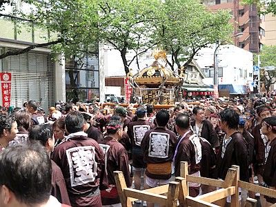 陰祭の年には一部町会の大人神輿が各自で渡御するほか、幾つかの町会の子供神輿が連合渡御する。