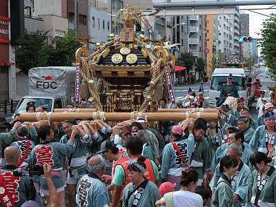 当社の例大祭は8月中旬で、3年に一度の本祭では土曜日に本社神輿が渡御し、翌日曜日には氏子の町神輿の連合渡御が行われる。