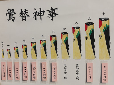 ウソ像は檜製で神職の手作り。また附属の由来書には通し番号が記されており、25日夕方の抽選の当選者には金の鷽と交換できる。